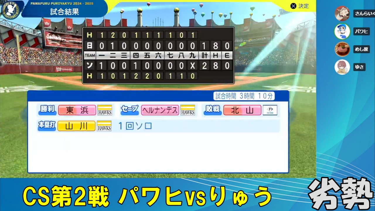 ifCSファースト 第2戦 ifホークス 対 ifファイターズ